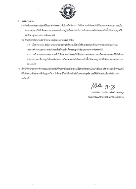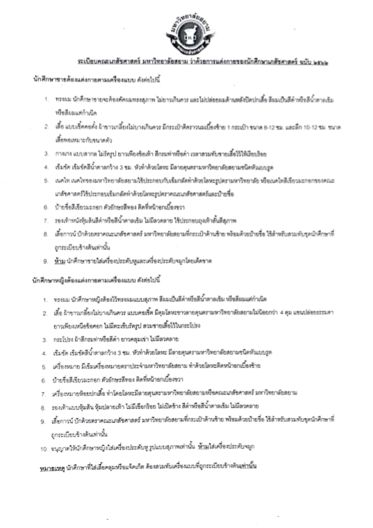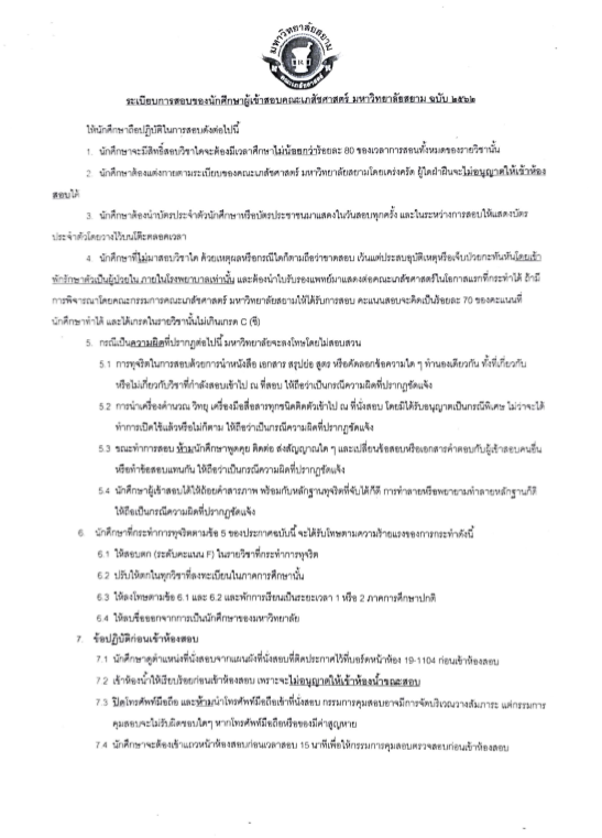 ระเบียบการสอบและการแต่งกาย คณะเภสัชศาสตร์ มหาวิทยาลัยสยาม